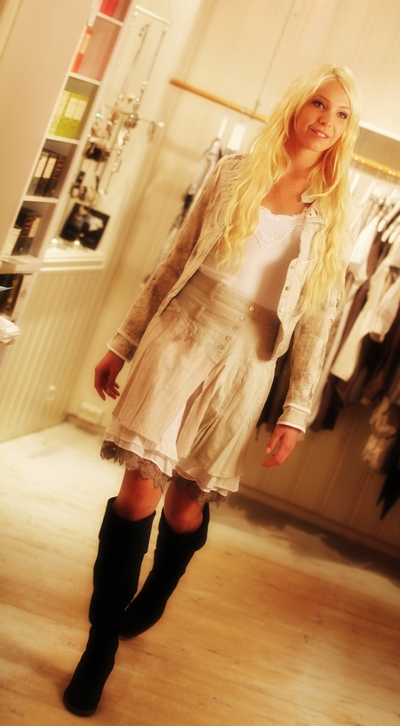 Jeg startet min modellkarriere i Fosnavåg, for min kjære tante som hadde klesbutikk. Utallige er de gangene jeg spankulerte ned catwalken på kulturhuset som tenåring.